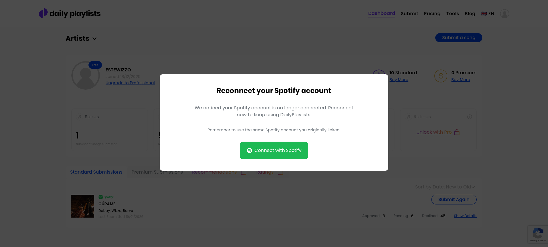 IVE BEEN TRYING TO ADD SOME MUSIC AND SUBMIT SONGS TO PLAYLIST AN IT DOESNT LET ME. IVE TRIED EVERYTHING AND IT KEEPS BRINGING UP TO ADD MY SPOTIFY ACCOUNT AND I PUT IT AND THEN REPEATS AGAIN AN AGAIN